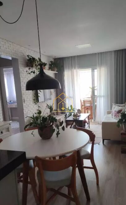 Com 2 quartos, sala com 2 ambientes, 1 banheiro social, varanda gourmet com churrasqueira, cozinha estilo americana, área de serviço, armários planejados e 1 vaga de garagem.