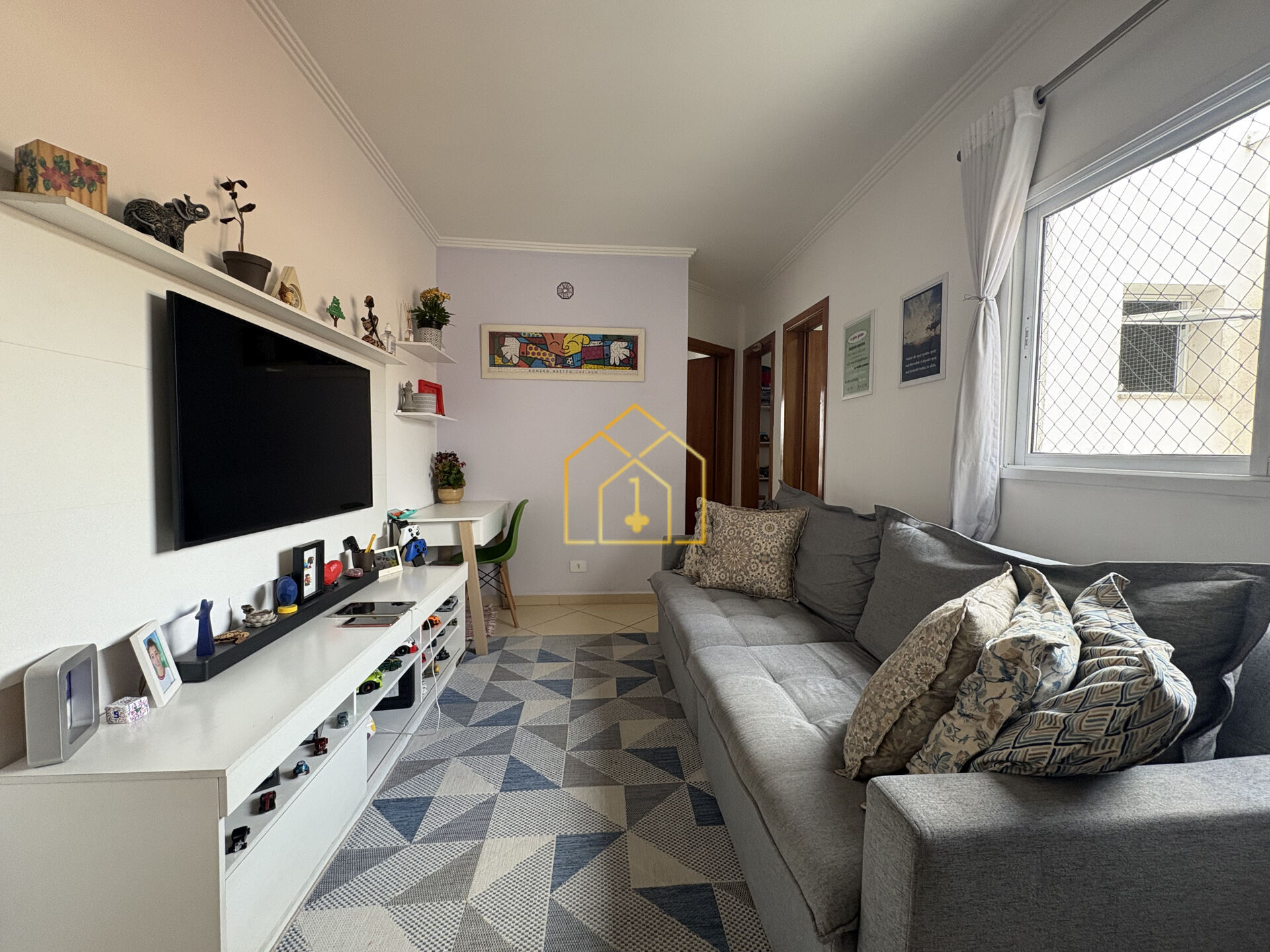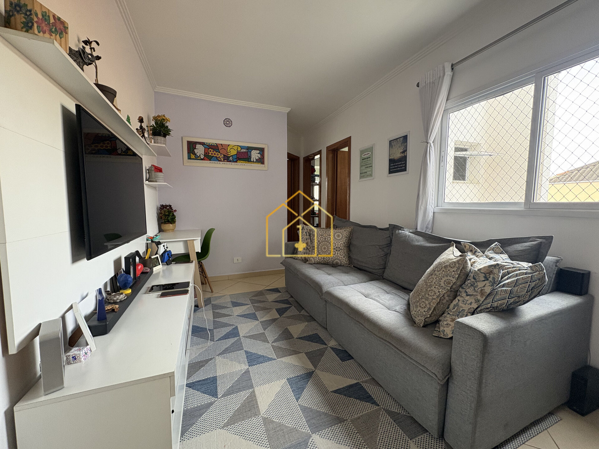2 Dormitórios, sendo 1 suíte2 Banheiros2 VagasGaragem Coberta1 Sala de TV1 Cozinha1 Área de serviço
