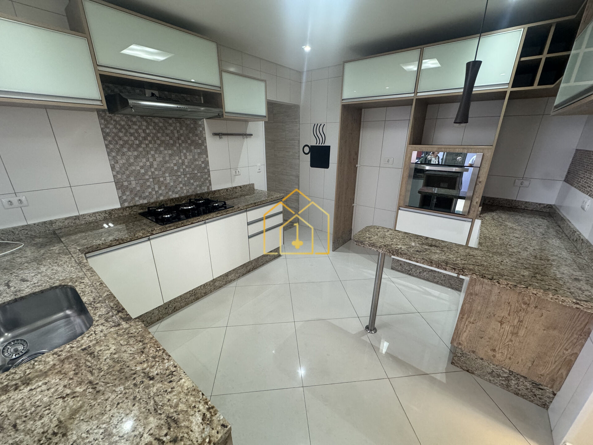 - Cozinha ampla: sanca em gesso, piso porcelanato, planejados, cooktop e forno;